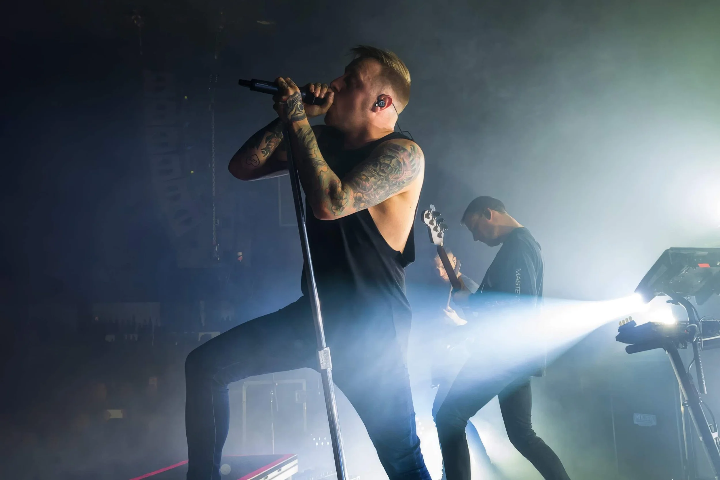 During one of the moments in which Carter spoke to the crowd, he thanked everyone for spending their hard earned money on tickets and for spending their evening not only enjoying their music, but also celebrating the life of guitarist Tom Searle, twin brother of Dan Searle, who had lost his battle with cancer. The crowd then started to chant “Tom! Tom! Tom!”